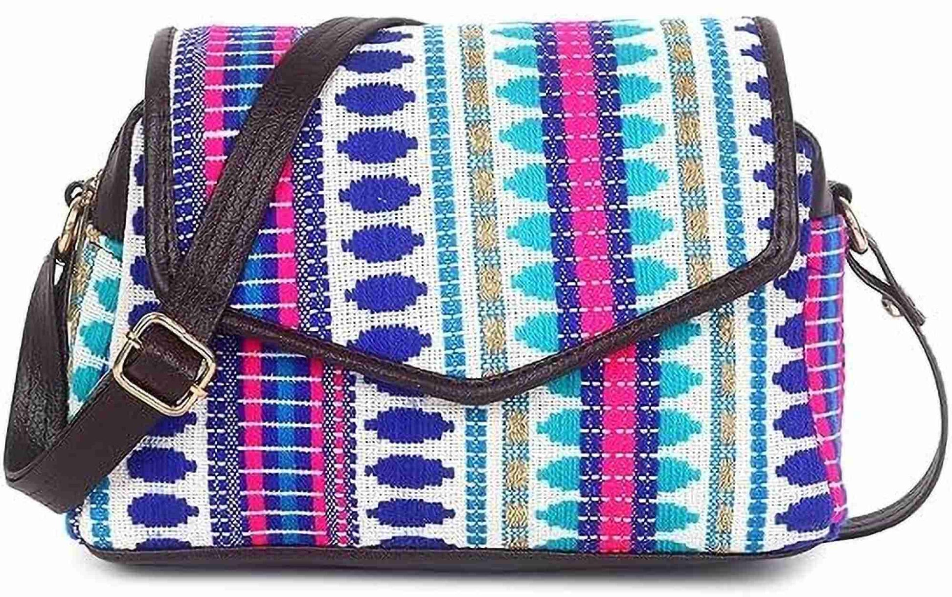 Channel effortless boho style with our College Boho Himalayan Crossbody Sling Bag. Handcrafted from soft Himalayan cotton, this vibrant blue & multicolour sling bag features a unique woven design that blends comfort with personality.