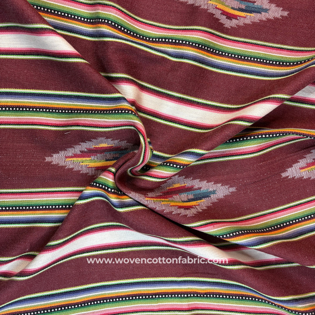 Brown Rustic Rows Cotton Jacquard Fabric,Per Meter