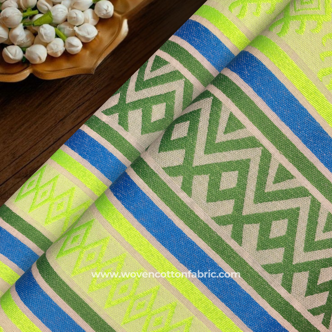 Neon Aztek Stripe Cotton Jacquard Fabric, Per Meter