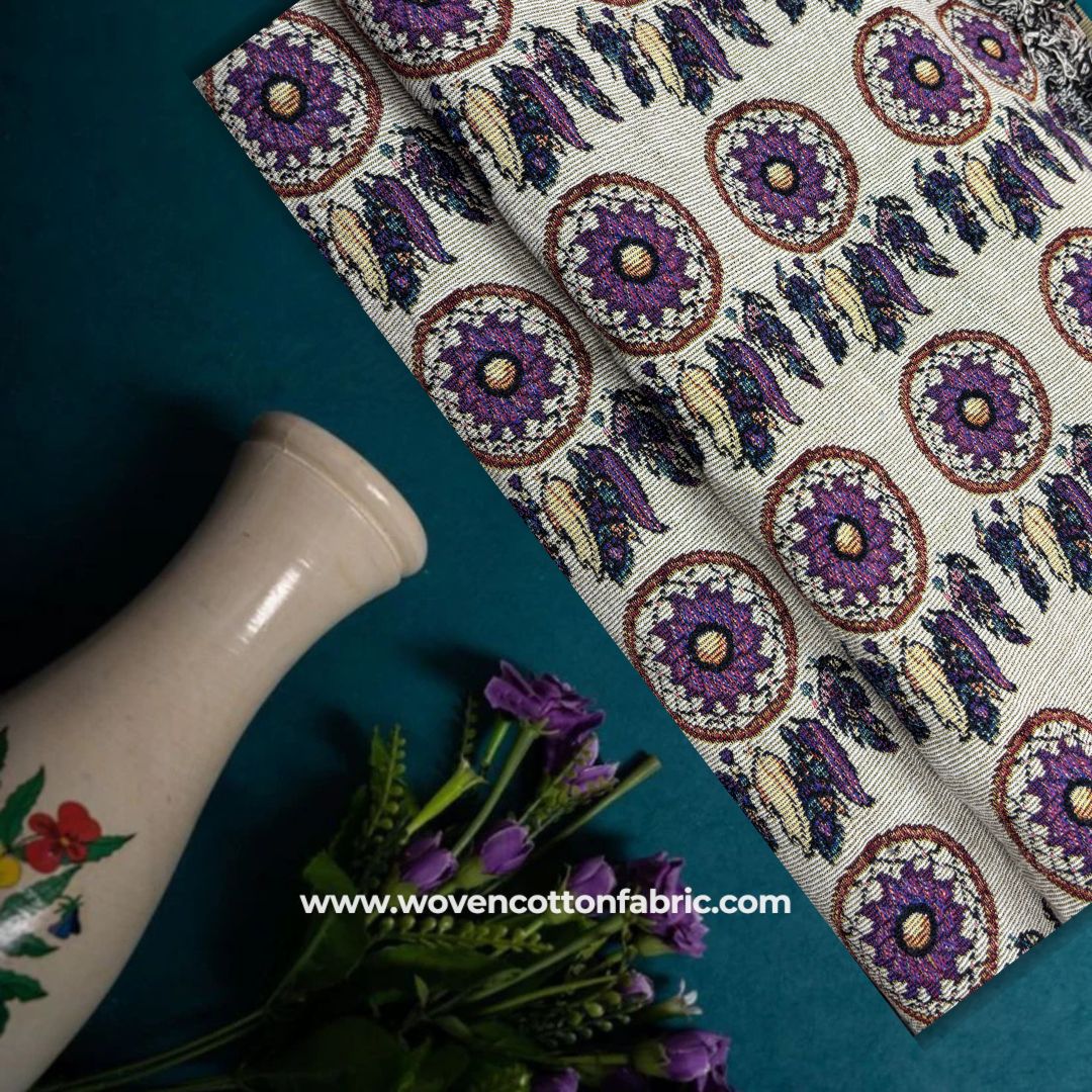 Jacquard fabric is a woven material distinguished by its intricate patterns and designs, which are woven directly into the fabric rather than being printed. This medium-weight fabric is durable and can last for many years. Jacquard fabrics are made from various materials, including cotton, wool, and acrylic. covers, Available in a wide range of colors, this fabric showcases detailed, textural patterns with slightly raised designs on its surface. Known for its stiffness and lustrous appearance, cotton jacquard is also popular in upholstery applications.