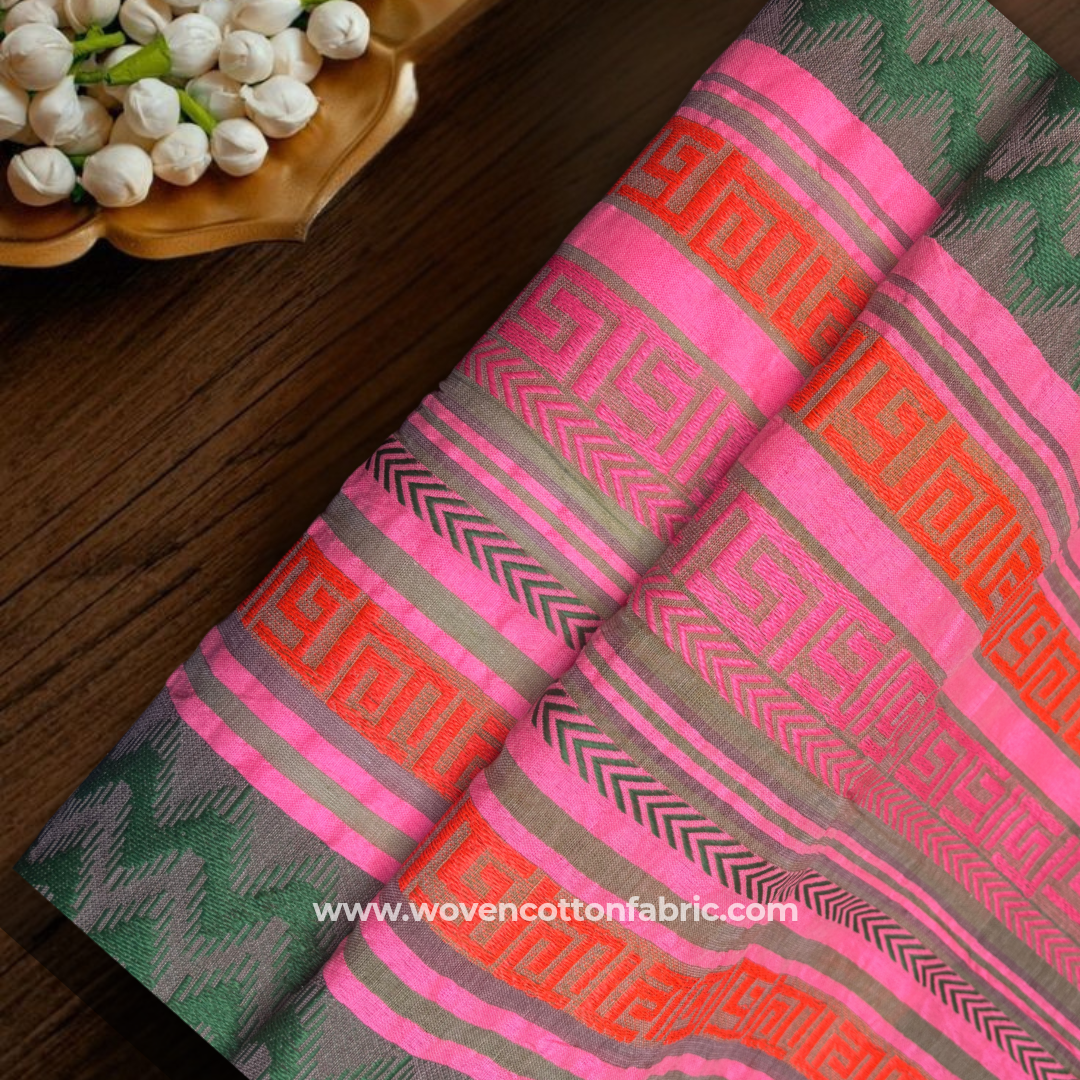 Pink Vintana Cotton Jacquard Fabric,Per Meter