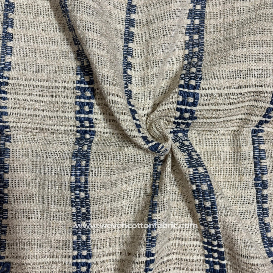 Linen Minimal Stride Blue Cotton Jacquard Fabric, A4 Swatch