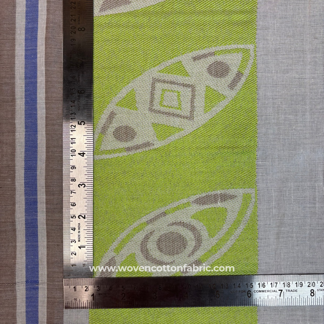 Green GeoBloom Cotton Jacquard Fabric, Per Meter